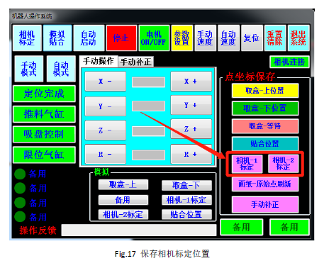 执行左上角“相机标定”后,分别进行相机1和相机2的自动标定,此过程主要目的是将相机坐标系和机械手坐标系关联到一起。