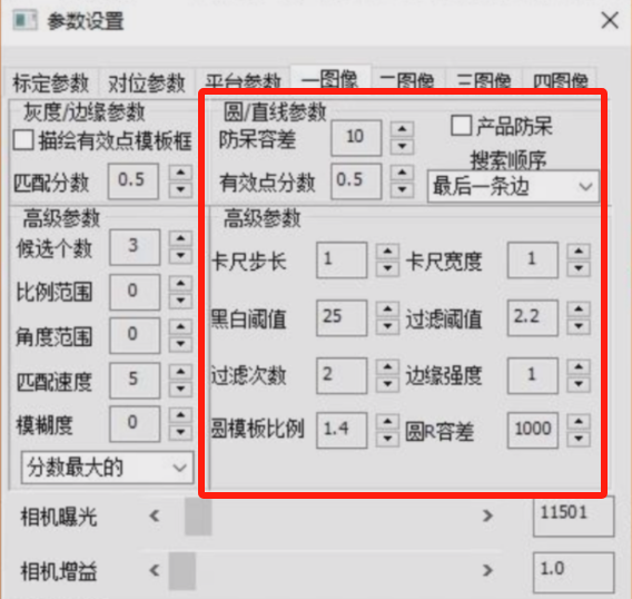 圆/直线工具参数:相对应本系统图像学习方法有:“圆形”、“直线交点”、“单直线”。
