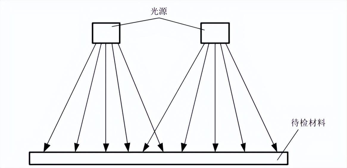 如图平面材料表面缺陷检测的光照分布示意图,通常采用单个或多个面阵相机即可获得理想的光照结果;而采用线阵光源则更容易实现,因为被照射区域各点到达光源中心的距离是相等的。