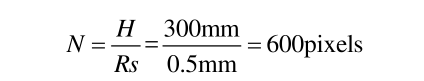 基于图像采集方案,设计检测精度要求为0.5mm,即能够检出最小缺陷尺寸为0.5mm*0.5mm,视野幅宽H=300mm,相机分辨率不能低于以下值:
