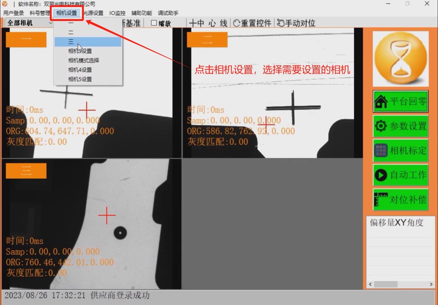 在主界面上侧,找到相机设置点击打开,选择您想要设置的相机