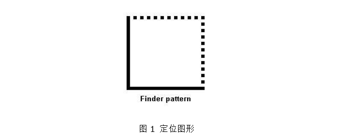 定位图形是资料区域的一个周界,为一个模组宽度。其中两条邻边为暗实线,主要用於限定物理尺寸;定位和符号失真。另两条邻边由交替的深色和浅色模组组成,主要用於限定符号的单元结构,但也能帮助确定物理尺寸及失真。