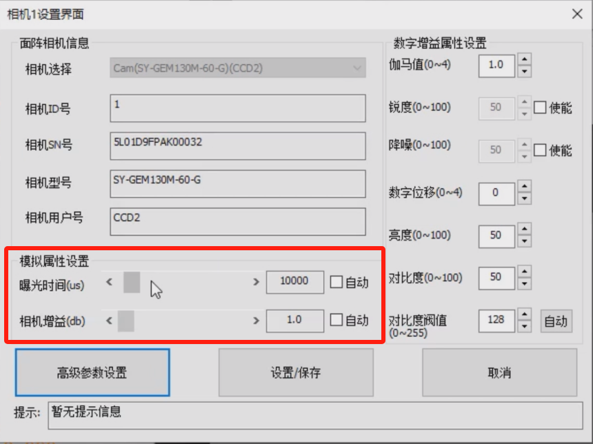 2. 相机增益:增益越大,亮度越高,噪点越大;