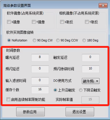频闪延迟:光源为频闪模式时,接收到频闪信号后延迟一段时间(us)后再进行触发。