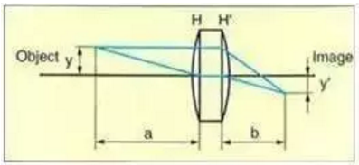 机器视觉行业里提到的镜头光学放大倍率通常是指垂轴放大倍率,即像和物的大小之比,计算方法如下: