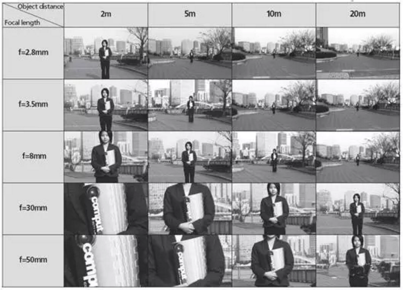 焦距越短,视场角越大,放大倍率越小,拍摄范围越大,拍摄画面中的人越小。反之视场角越小,放大倍率越大,拍摄画面中人越大。