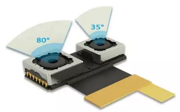 一颗85度广角镜头和一颗35度长焦镜头组成的双摄像头模组,可以通过双摄模组间的镜头进行切换,实现2X以上的光学变焦功能。