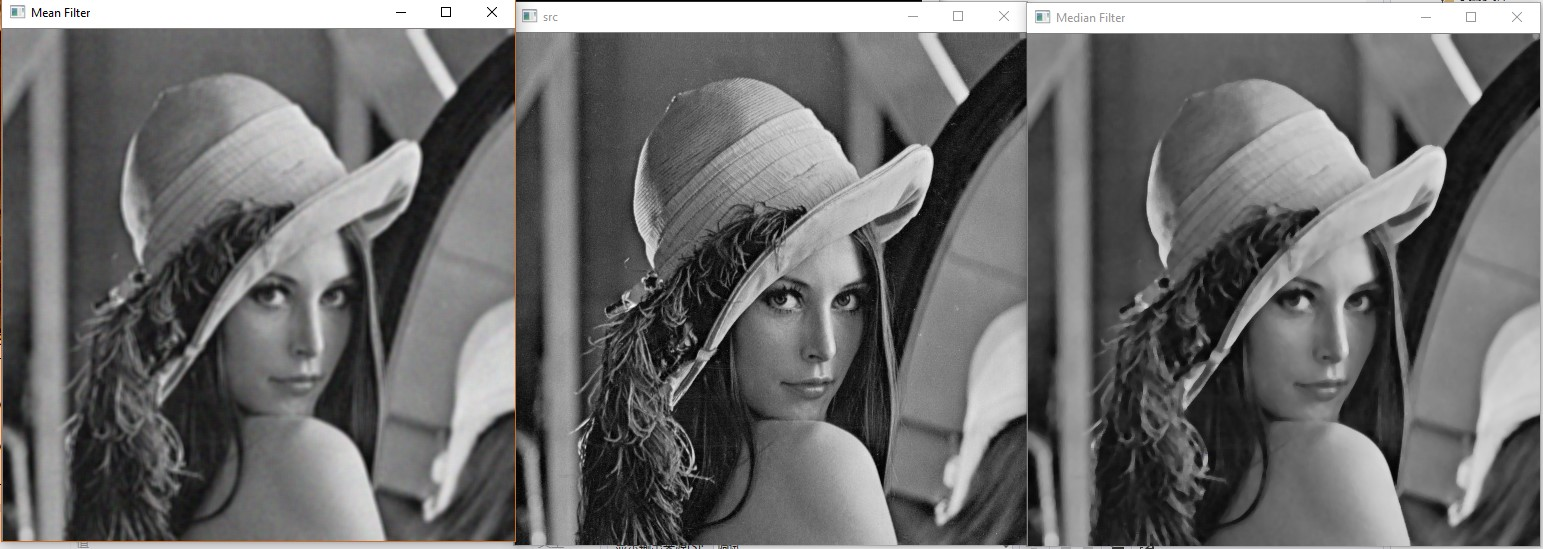 前两个参数是输入输出的图像,第三个参数是滤波器的大小,由于是选取的是中值,滤波器的大小通常是一个奇数。