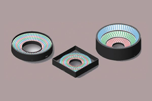 提供多种颜色、多种不同角度的环形光源可供选择,也可针对具体的机器视觉应用场合来对环形光源进行定制,由于它更能体现出被测物体的三维轮廓信息,能够有效避免机器视觉照明中出现的对角照射阴影问题,因此在AOI 领域应用广泛。