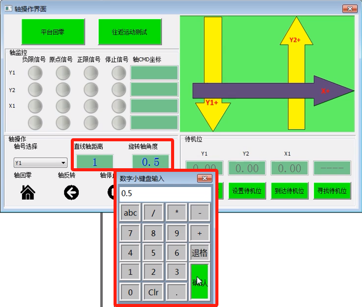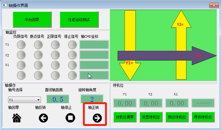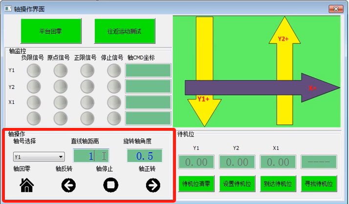 调试助手中选择运动控制(对位平台运动控制)点击打开,可以看到运动控制轴快捷操作界面