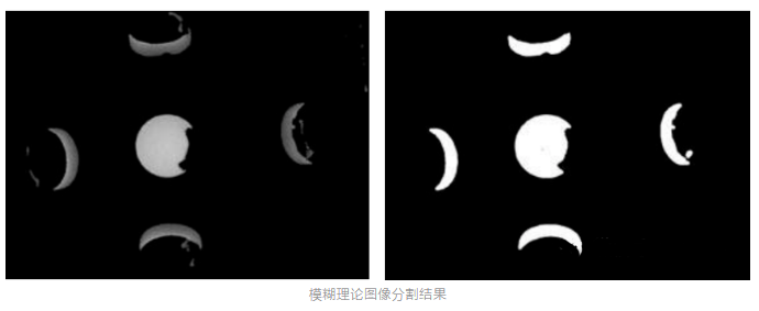 图像分割:在分析药片缺陷信息前,需准确地提取并分离出药片缺陷信息,即:分离药片缺陷特征。针对药片的缺陷特征(尤其是药片表面的划伤缺陷)与药片表面的灰度差别小、景深小、存在模糊信息,通过采用基于模糊理论的图像分割算法提取药片的缺陷信息。