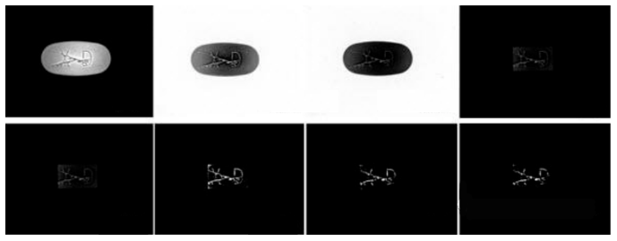 难以分离药片的字符特征。与药片的表面相比,药片的字符存在景深小的特点,在药片图像中表现为,药片的字符和药片融为一体,仅存在细微的灰度差别。此外由于划痕和字符的特征相似,较难以提取字符特征。鉴于此,本文提出了字符缺陷检测算法。