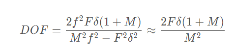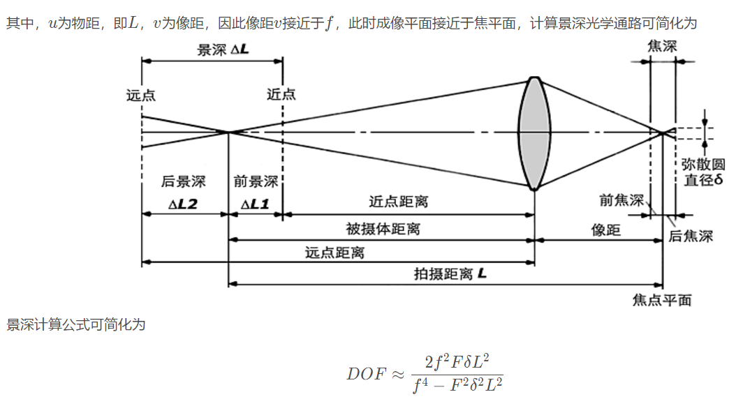在这里可以看出:景深是相对的,不是绝对的,和弥散圆直径 δ的取值大小有着直接的关系。容许弥散圆直径的计算公式δ = d / 1730 ,d为CCD芯片对角线长度(芯片尺寸)。