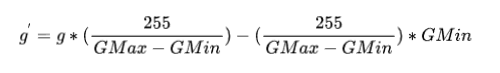 scale_image()的作用是增强图像的色彩对比度,让图像中黑的地方更黑,亮的地方更亮,其原理计算公式为: