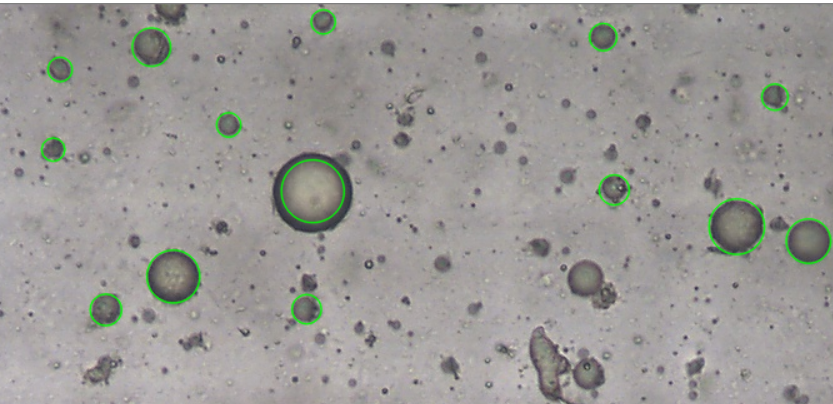 特征筛选是根据计算出的Blob区域进行计算,然后根据选择的特征,比如Area(面积)、Width(宽)、Circularity(圆度)、inner_radius(内接半径)、anisometry(长宽比)等等,最终得出需要的区域,如图3所示,根据面积和圆度来筛选得出。