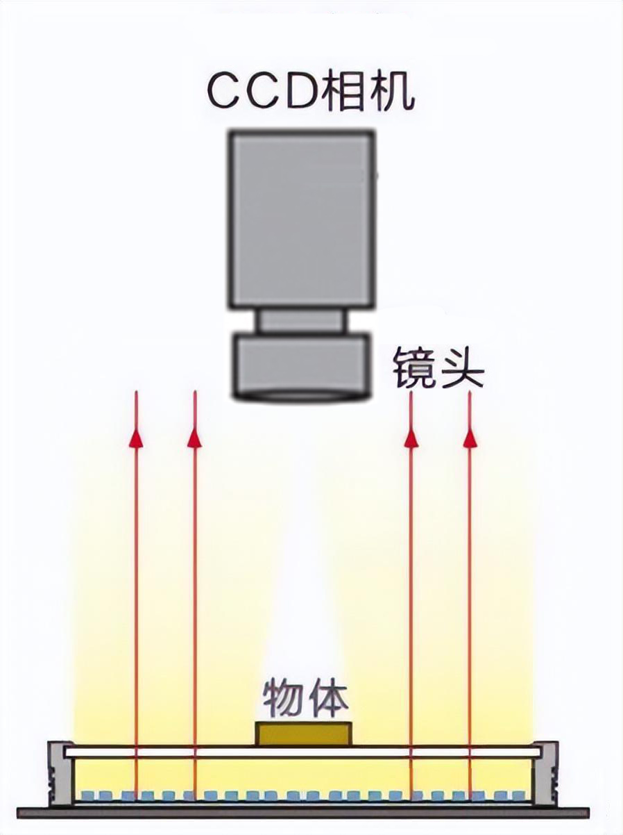 背部打光是指将光源放置在被测物体的后方,用于凸显产品外形轮廓,可以在明亮的背景下创建物体的深色轮廓。