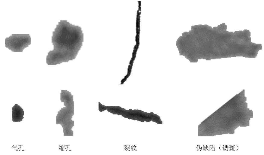 (2)缩孔缺陷的形状不规则,在图像中灰度值也较低。由于缩孔内壁粗糙,图像中的该缺陷区域可能存在一定灰度变化。