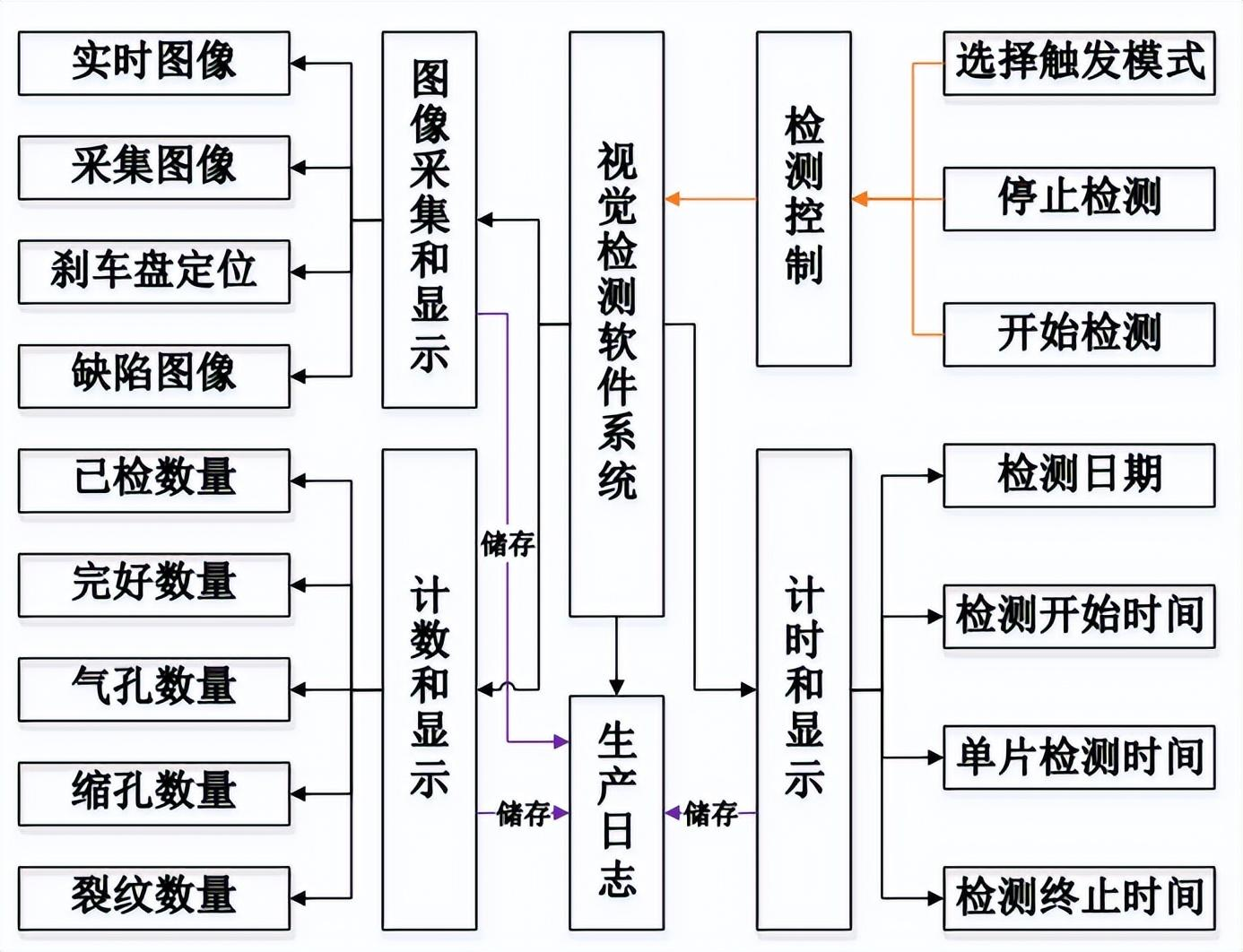 视觉检测软件应当具有实时数据存储的功能,能够记录下已检测铸件的数量、合格品数量以及不同类型缺陷的数量,并且记录下每次检测的起止时间以及单个铸件的检测耗时,生成产品检测日志,便于后续回溯分析,改进生产工艺。