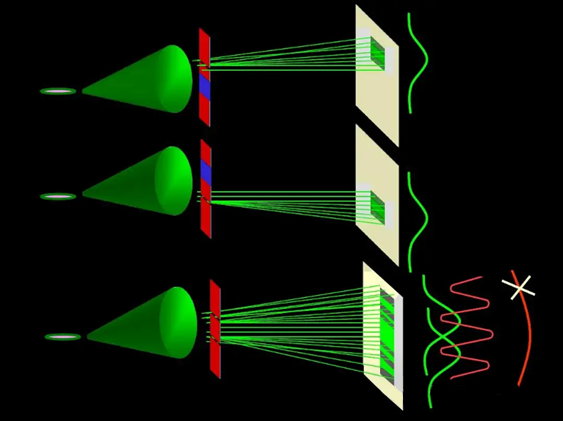 衍射(diffraction)是指波遇到障碍物时偏离原来直线传播的物理现象。在经典物理学中,波在穿过狭缝、小孔或圆盘之类的障碍物后会发生不同程度的弯散传播。与之相关的概念有艾里斑、瑞利判据等。