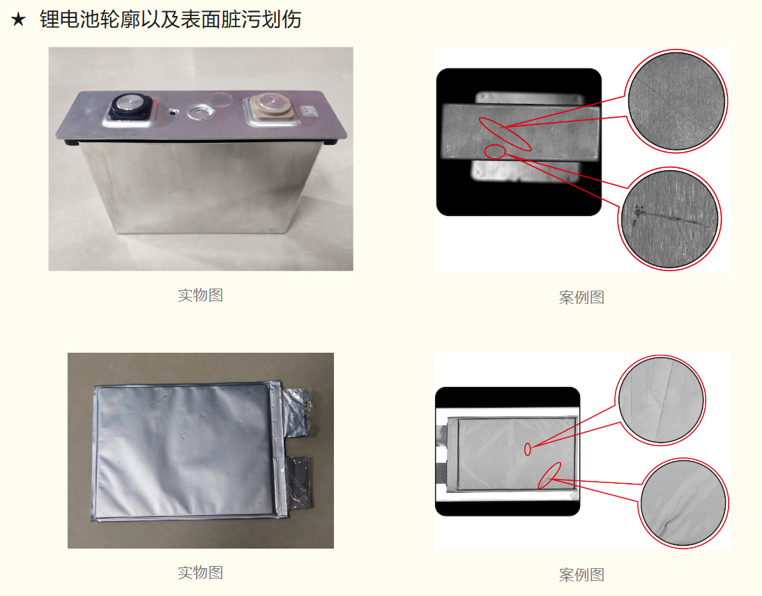 锂电池会封装成一个电池包,它的外观检测也要求非常严谨。在生产中,封包主要为机器操作,常见的刮花、压伤与脏污等问题,大部分是机器生产时造成的。