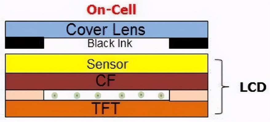 虽然该技术跟InCell技术只差了一个字母,但是差距是不小的,这一技术也是主要由面板生产商主导研发,该技术是指将触摸屏嵌入到显示屏的彩色滤光片基板和偏光片之间的方法,即在液晶面板上配触摸传感器,相比InCell技术难度降低不少。三星、日立、LG等厂商在OnCell结构触摸屏上进展较快,目前,OnCell多应用于三星Amoled面板产品上,技术上尚未能克服薄型化、触控时产生的颜色不均等问题。
