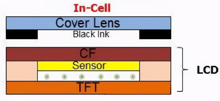 将TP的功能嵌入到液晶像素中的技术,即在显示屏内部嵌入触摸传感器功能,因此原本3层的保护玻璃+TP+LCD变成了两层的保护玻璃+带触控功能的LCD,这样能使屏幕变得更加轻薄。AMPLED的屏大多使用这种技术。用这种技术的LCD,需要TDDI芯片,也即是触控与显示驱动器集成(Touch and Display Driver Integration )。