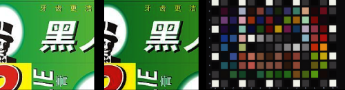通过标准白板及专有色卡对采集系统进行标定得到RGB到LAB空间的颜色转换模型,把实时印品不同区域不同颜色的LAB值与标准样本对应区的LAB值比较得到色差△E。