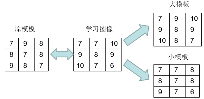 通用型检测算法,即基于标准模板比对的算法,一般用于检测灰度或者颜色差异比较大、面积稍大的各种缺陷。算法原理:分为离线和在线两个步骤。离线:通过定位校正实时图像与模板图像的位置偏差,把校正后的合格的图像作为样品集训练出大小模板;在线:通过定位校正实时图像,比较实时图像与大小模板每个像素之间的像素值,并计入一个错误值,若样品像素在可接受的范围,其错误值为零,若超过了此范围,就由错误加权计算出其错误值,并进行连通性分析得到Blob、对Blob进行面积、占空比、能量等形状特征分析识别缺陷。1)大小模板如何生成?