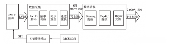 FPGA逻辑设计是本成像系统的工作重点,针对选用的CMOS传感器的技术特点,对各个功能模块进行了设计和优化。FPGA的逻辑设计实现了CMOS传感器的数据采集、图像处理、接口变换等逻辑功能。
