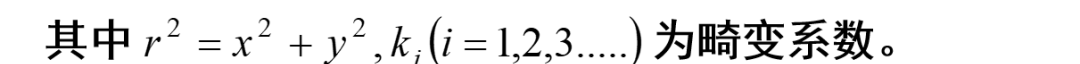 径向畸变主要是由镜头形状缺陷造成的,是关于摄像机镜头的主光轴对称的。正向畸变是枕形畸变,负向畸变是桶形畸变,其数学模型为: