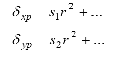 薄棱镜畸变是由于镜头设计、制造缺陷或加工安装误差所造成的,如镜头与摄像机像面有很小的倾角等。这类畸变相当于在光学系统中附加了一个薄棱镜,不仅会引起径向偏差,而且引起切向误差。