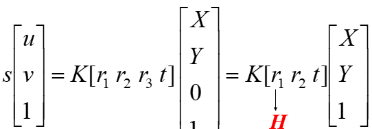 其中,K为摄像机的内参数矩阵。由于摄像机有5个未知内参数,所以当所摄取得的图象数目大于等于3时,就可以线性唯一求解出K。