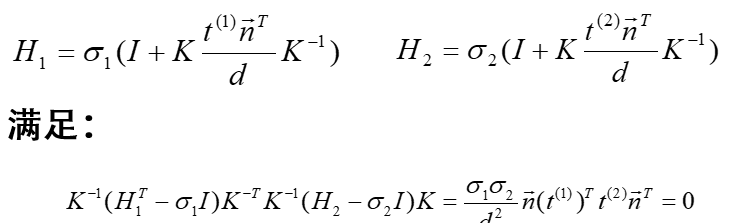 t(1)、t(2)为摄像机一组正交的平移运动,两个单应矩阵: