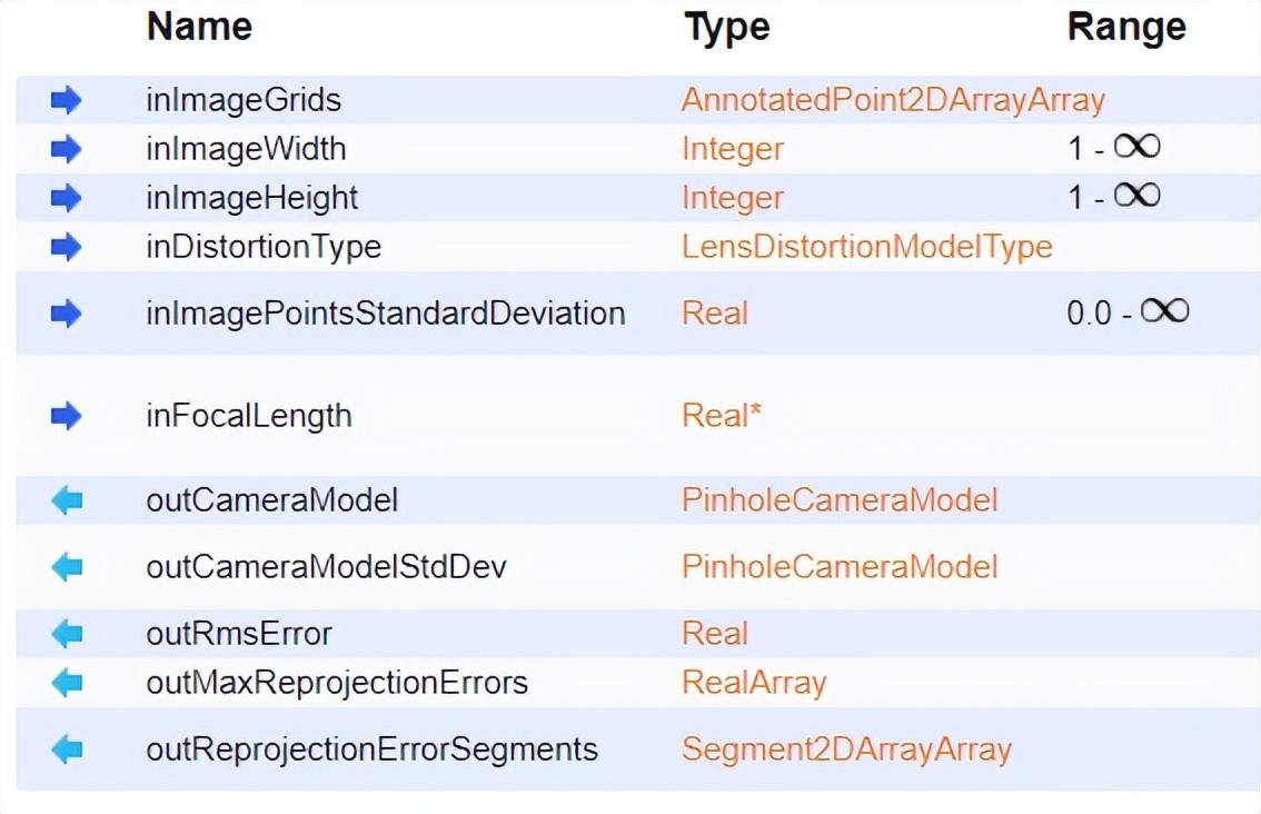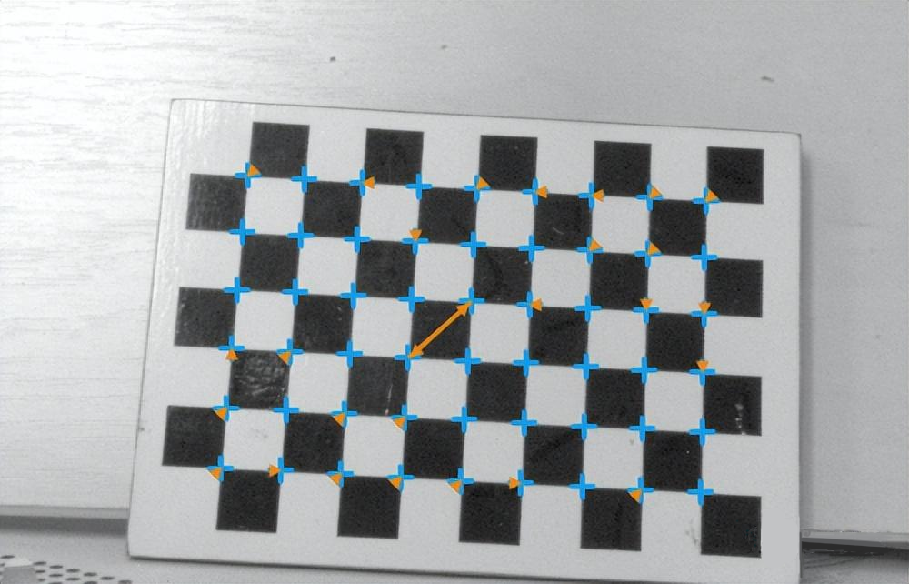滤波器通过有效地最小化RMS重投影误差(图像上观察到的网格点之间的平均平方距离的平方根),从一组平面校准网格中估计工业相机的固有参数-焦距,主点位置和畸变系数,使用估计的参数(即网格姿态和相机参数)将关联的网格坐标投影到图像平面上。