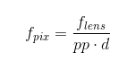 其中f_pix焦距测量为像素,f_镜头焦距测量为毫米,pp-传感器像素间距测量为每像素毫米,d-工业相机结合或/和图像缩小因子。