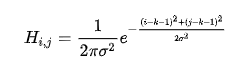 生成的过程,首先根据模板的大小,找到模板的中心位置ksize/2。 然后就是遍历,根据高斯分布的函数,计算模板中每个系数的值。