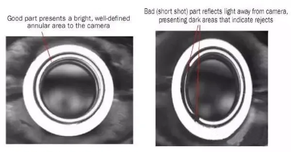 亮场照明技术依赖表面纹理和平坦地形。光线遇到平坦反光的表面将光线反射回到相机,创立一个亮区域。粗糙纹理或表面缺损会将光线散射而远离相机,创立了暗区域。