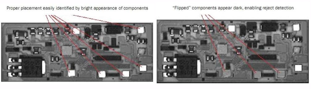 比如检测倒装芯片(Flipped Chips),在PCB装配中验证合适的零件方向是常见的机器视觉应用。