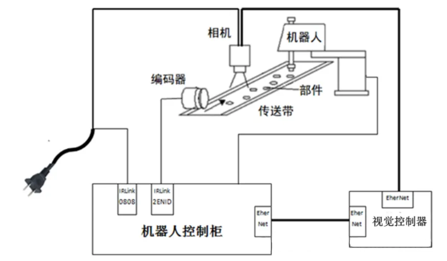 跟随工艺是跟踪移动的物体,以移动的物体为参考规划机器人的运动,传送带跟随是跟随工艺中的一种典型应用。传送带跟随是通过视觉或光电传感器检测到传送带上的物体,实时跟踪移动的物体,以移动的物体为参考坐标系,进行轨迹和点位运动。