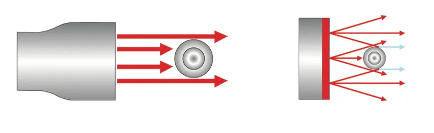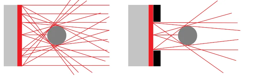 光源的发散度越小,光源就越适合用于遮挡照明。图2展示了准直光和发散光源如何与被检查对象进行不同的相互作用。