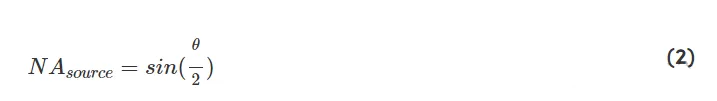 在为成像系统选择合适的透镜和照明源对时,数值孔径是最重要的考虑因素之一。透镜的数值孔径是一个无单位的数字,用来描述其收集离轴光的能力。方程2表明,源的NA由其散度θ定义。