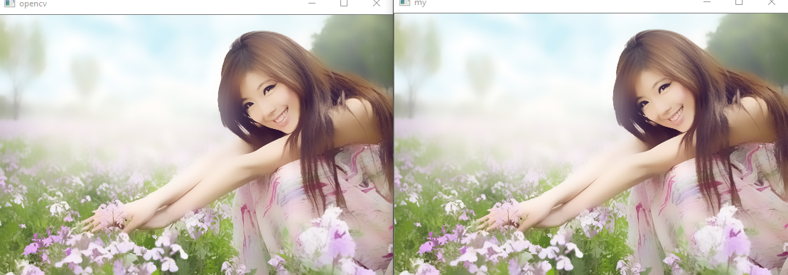 实现的结果和OpenCV的实现相差无几。sigma = 80,模板大小为20