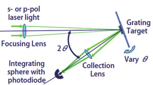 机械运动式变角度测量法通常使用步进式电机带动转臂、样品台、反射镜旋转,或带动透镜垂直光路光轴的方向上移动从而改变光的角度,利用探测器采集样品散射光信息进行下一步的分析。例如测角光学散射仪(GOSI),通过旋转样品台改变光的入射角,对目标的s偏振和p偏振的镜面反射进行面内测量。