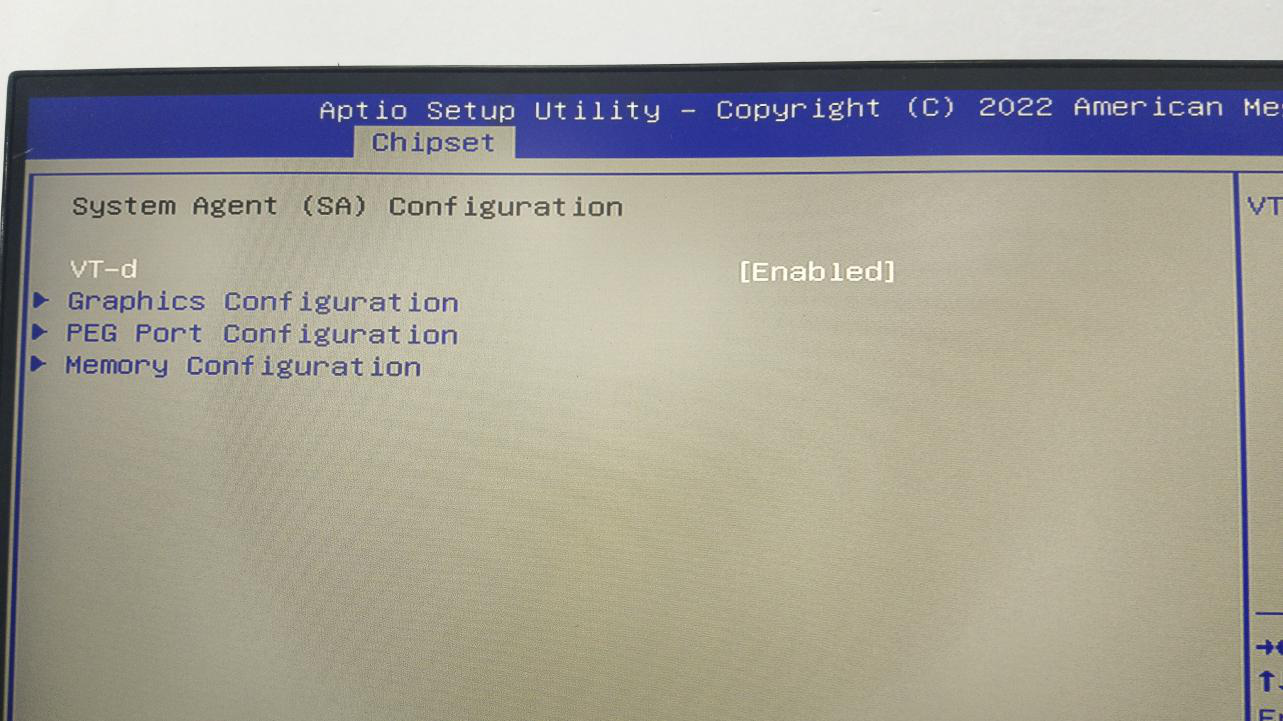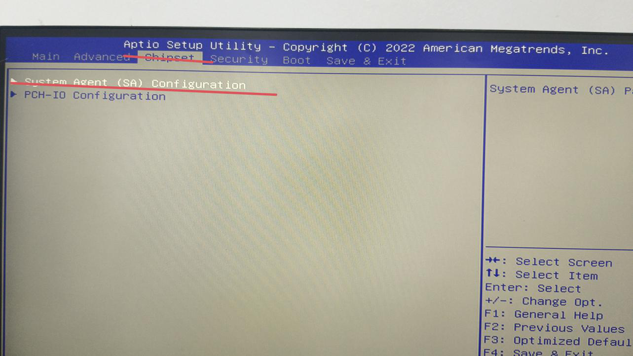 3.向左移动到“chipset”,移动到在此栏目时,栏目下第一个就是要进入的“SystemAgent(SA)Configuration”,点击键盘上的回车键“Enter”