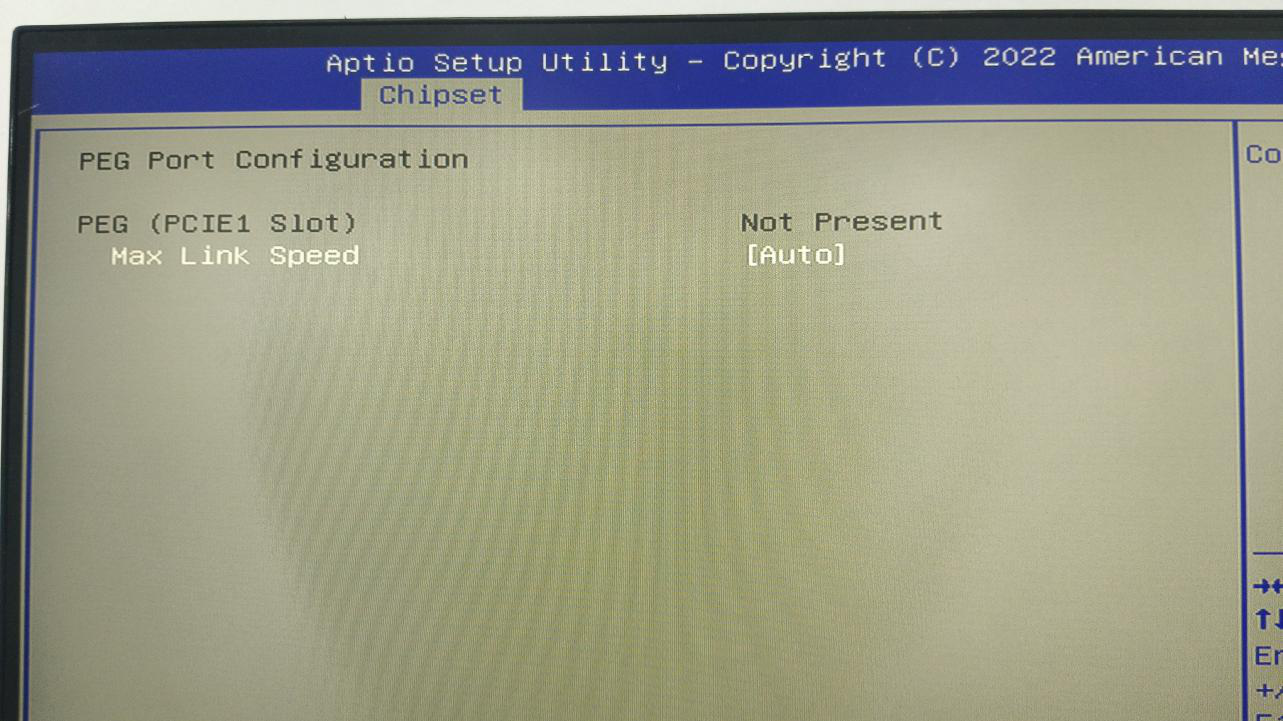 5.向下移动到“PEG Port Configuration”并按回车键进入