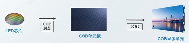 COB技术路线是发将光芯片(晶圆)直接焊接在PCB板上,然后整体覆膜形成单元模组,最后拼接成一整块LED屏。