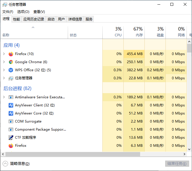 2.进入任务管理后,可以看到有哪些应用在运行。