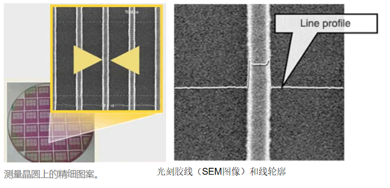 CD(CriticalDimention关键尺寸)SEM(CD-SEM:关键尺寸扫描电子显微镜)是一种专用系统,用于测量半导体晶圆上形成的精细图案的尺寸。CD-SEM主要用于半导体电子器件的生产线。