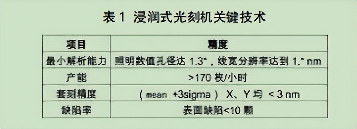 随着浸润式光刻技术的发展和成熟度越来越高,目前其精度已然达到 28 nm 生产工艺节点,其各项主要性能也得到业界认可,如表 1 所示。