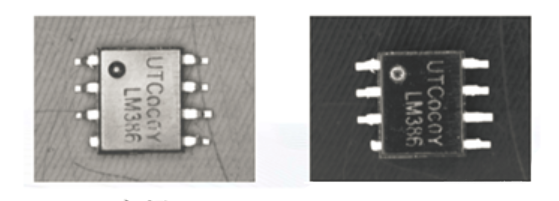 一颗芯片在明场与暗场下的成像,左明右暗